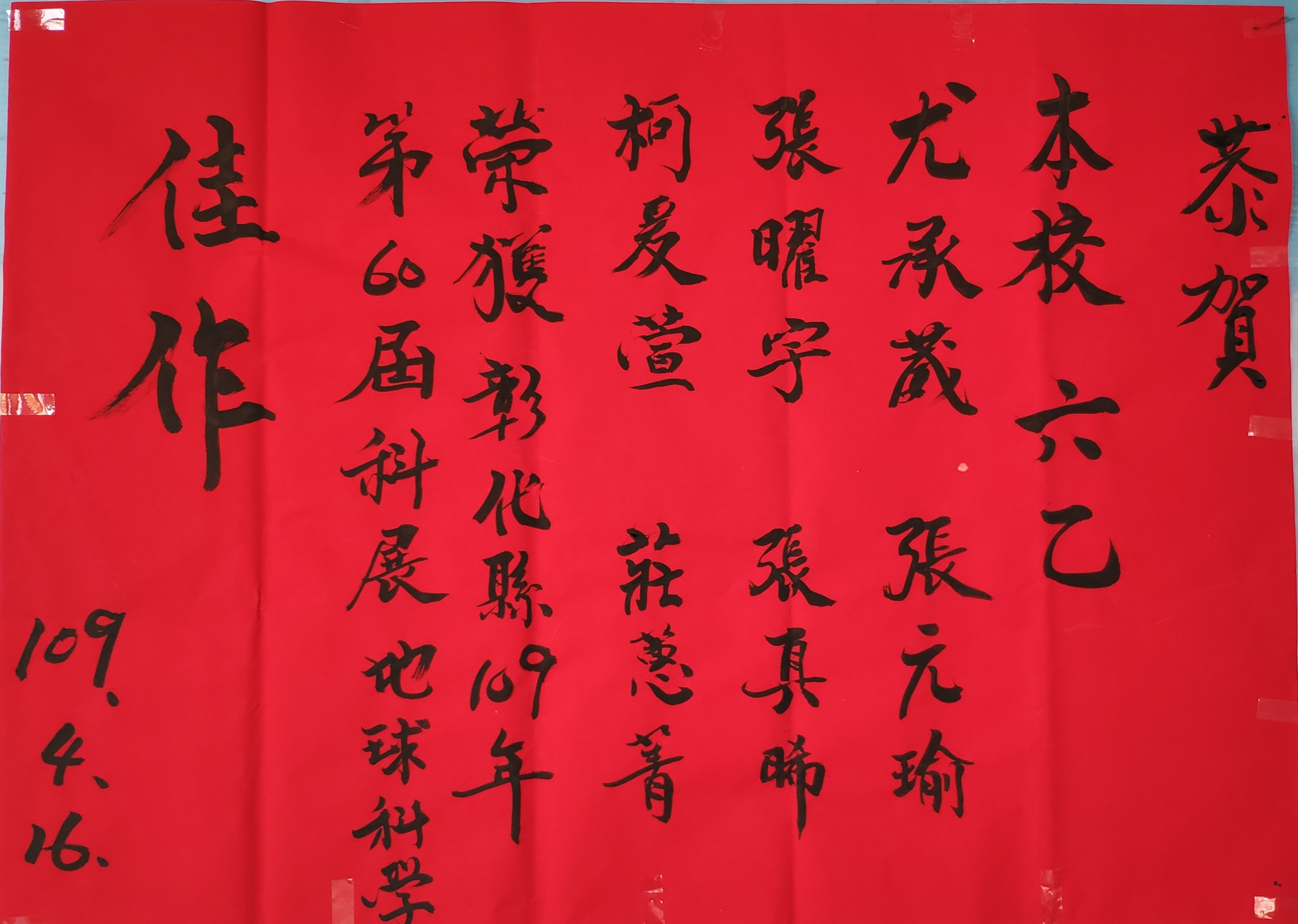 恭賀本校參加彰化縣109年第60屆科展,榮獲國小乙組地球科學佳作。